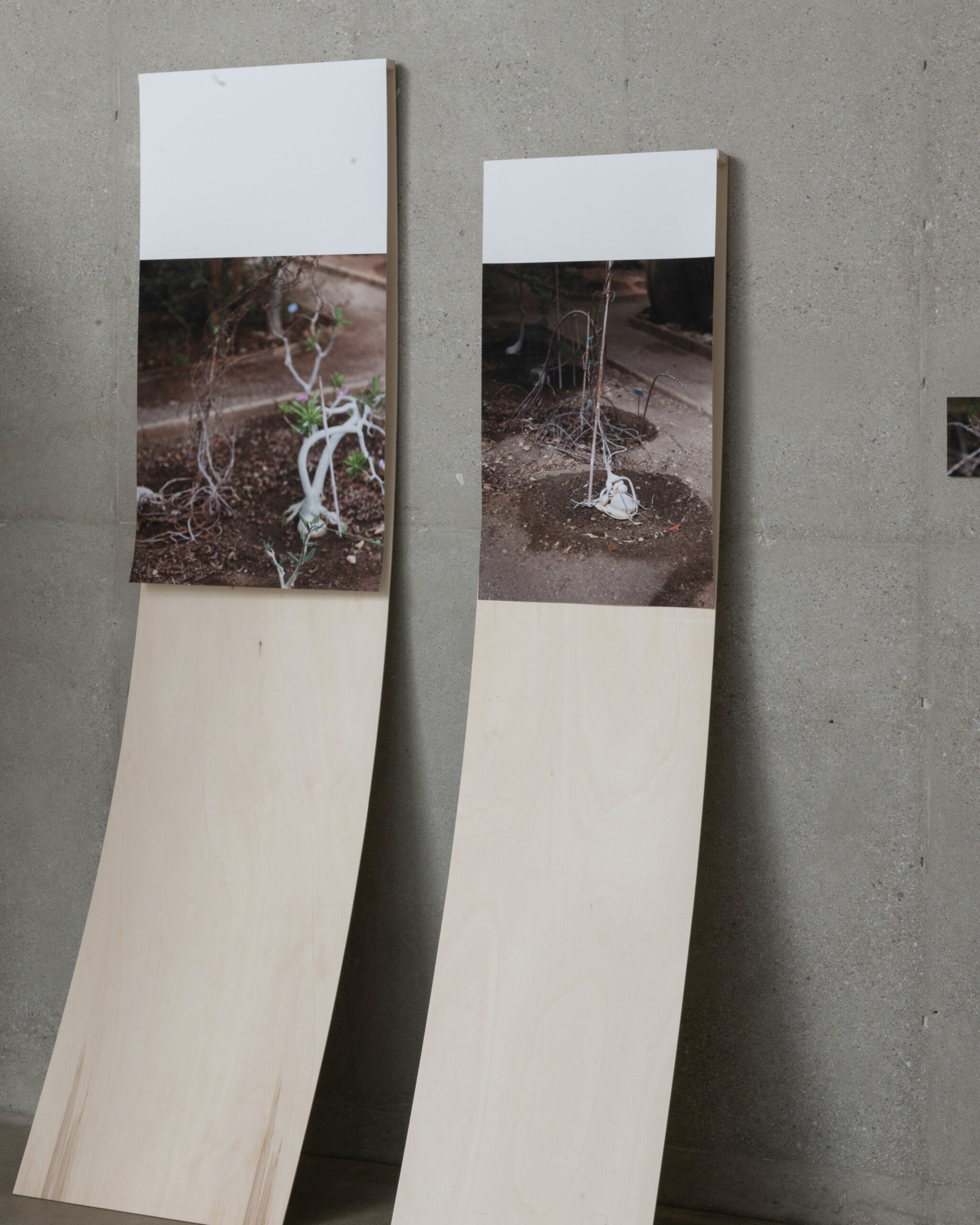 Promise Litter 숨겨진 잔해 is a photographic installation that explores sparks of off-kilter energy embroidered in the nature of the photographer’s own world, indiscriminately across vegetation and urban fabric alike. The series reflects on the cardinal regenerative and degenerative forces at play in nature being synonymous, lending them the same impartial eye. The photographs have their footing in the fringes of the observable, bubbling with a chaotic energy of fertility, germination, decay, stillness, calm, movement, scatter. With a felt emphasis on photographs looking downwards, Promise Litter 숨겨진 잔해 seems to suggest buried lines connecting distant forms of life, accenting the physical ground beneath as if to feel its pulse.